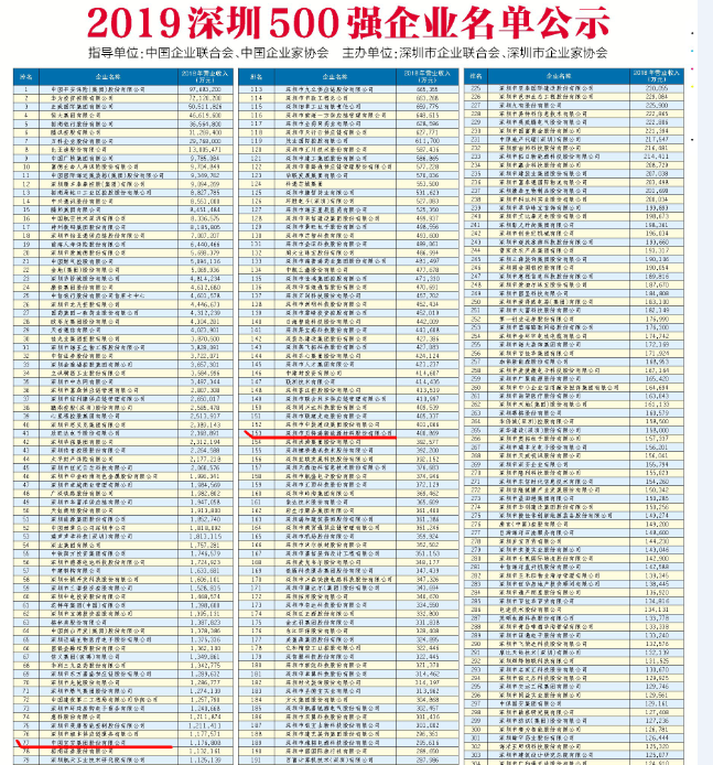 7月30日,《2019深圳500强企业发展报告》正式公布,“2019深圳500强企业”名单按照营业收入排序,集团名列第77位,集团所属企业贝特瑞排在第153位。
